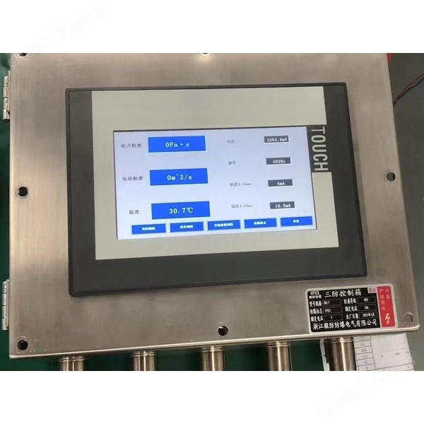 方便现场生产过程中物料粘度大小控制,在一定温度下物料的粘度随温度高低而粘度大小发生改变,控制系统采集数据的同时可以根据粘度大小内置可编程控制器,或者连接到DCS系统,实现对现场物料添减的控制。